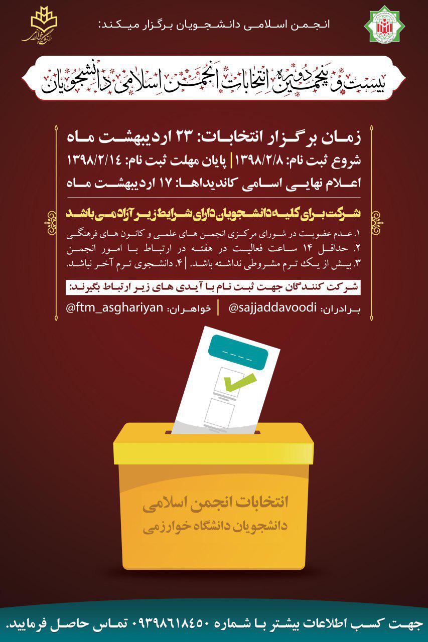 انتخابات انجمن اسلامی دانشگاه در تاریخ 23 اردیبهشت ماه و با حضور حجت الاسلام و المسلمین نعمتی