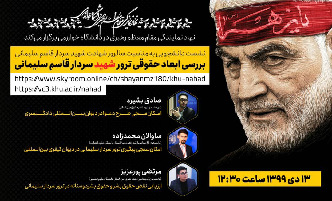 بررسی ابعاد حقوقی ترور شهید سردار قاسم سلیمانی 12 دی 1399اخبار نهاد رهبری واحد تهران, اخبار نهاد رهبری واحد کرج, اطلاعیه هابدون دیدگاهنهاد رهبری در دانشگاه خوارزمی