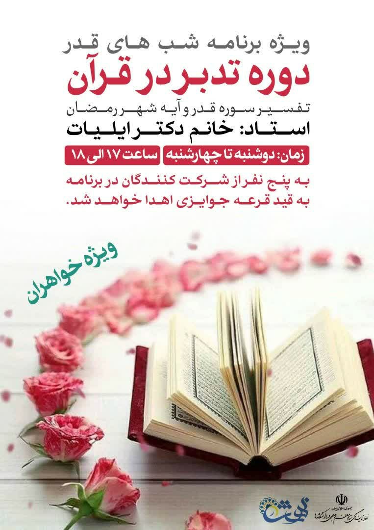 دوره تدبر در قرآن کریم (ویژه خواهران) 13 اردیبهشت 1400اخبار نهاد رهبری واحد کرج, واحد خواهرانبدون دیدگاهنهاد رهبری در دانشگاه خوارزمی