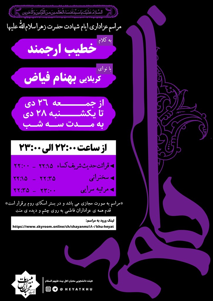 مراسم اقامه ی عزای ایام شهادت حضرت زهرا سلام الله علیها