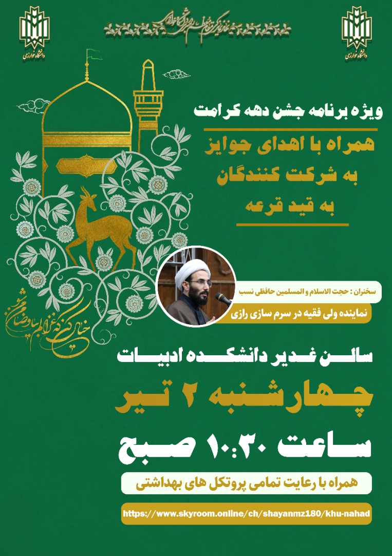 ویژه برنامه جشن دهه کرامت 01 تیر 1400اخبار نهاد رهبری واحد کرج, اطلاعیه هابدون دیدگاهنهاد رهبری در دانشگاه خوارزمی