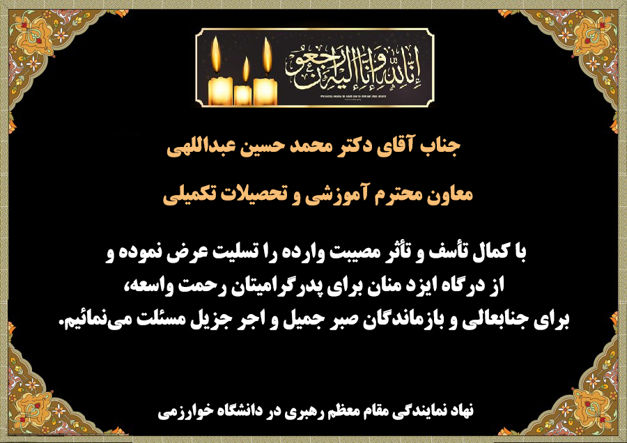 پیام تسلیت دفتر نهاد به جناب آقای دکتر عبداللهی 12 دی 1400اخبار دانشگاه خوارزمی تهرانبدون دیدگاهنهاد رهبری در دانشگاه خوارزمی