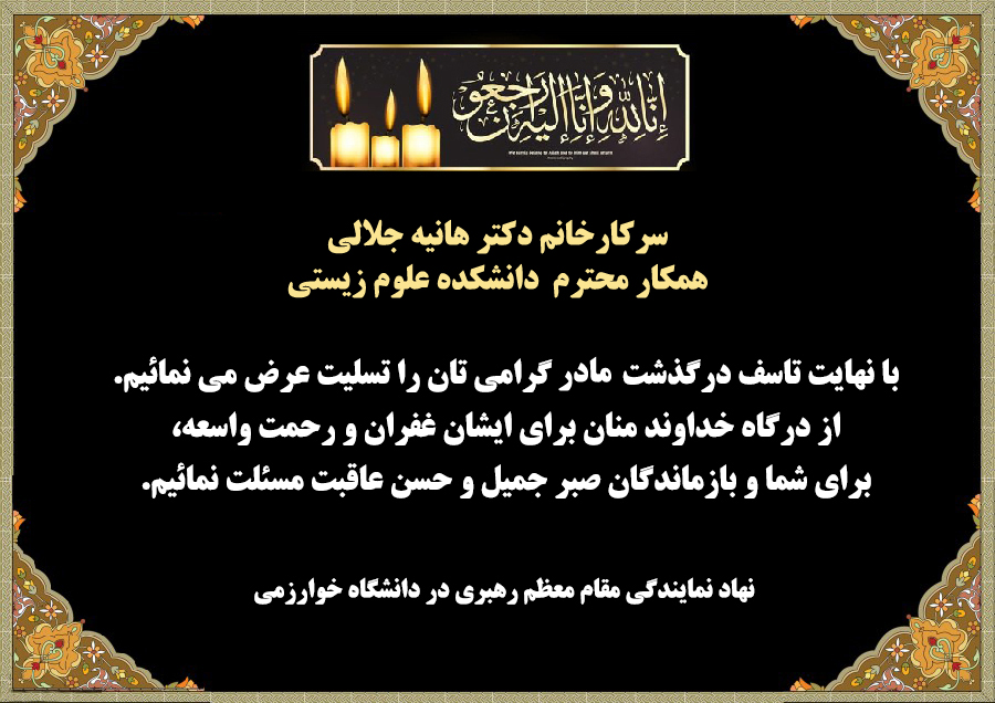 پیام تسلیت دفتر نهاد به سرکار خانم سپهری، جلالی و جناب آقای زارعی و (همکاران دانشگاهی) 27 تیر 1400اخبار دانشگاه خوارزمی تهرانبدون دیدگاهنهاد رهبری در دانشگاه خوارزمی