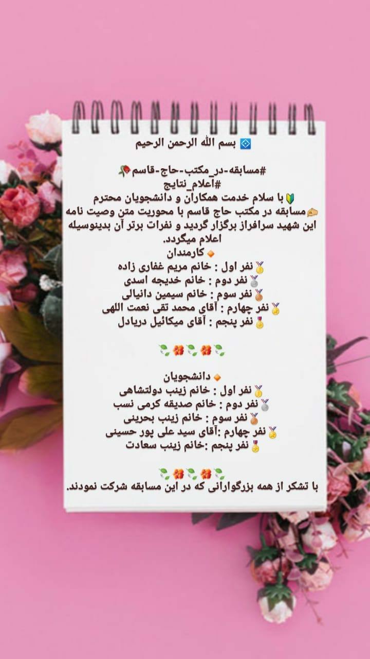 با تشکر از همه عزیزانی که در این مسابقه شرکت نمودند.