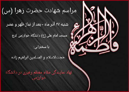 اقامه ی عزای ایام شهادت حضرت زهرا سلام الله علیهاaccess_time 14 دی 1400comment بدون دیدگاه اقامه ی عزای ایام شهادت حضرت زهرا سلام الله…