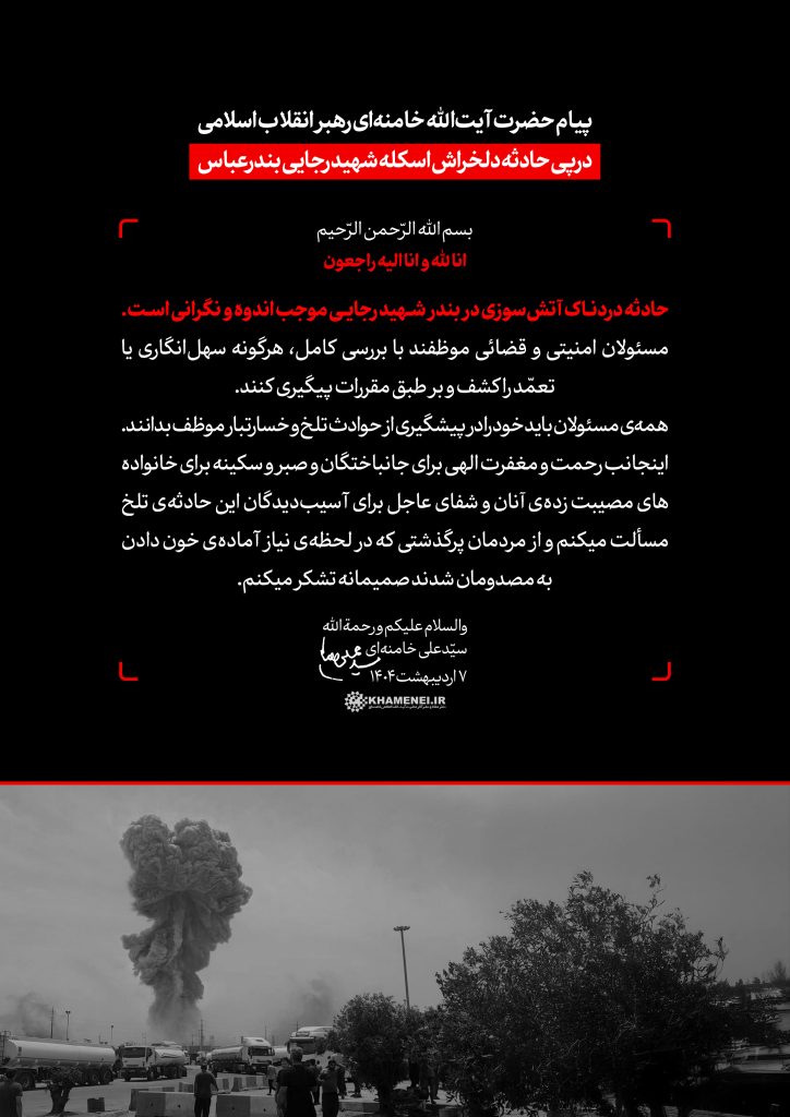 پیام رهبر انقلاب اسلامی درپی حادثه دردناک بندر شهید رجاییaccess_time 09 اردیبهشت 1404comment بدون دیدگاه