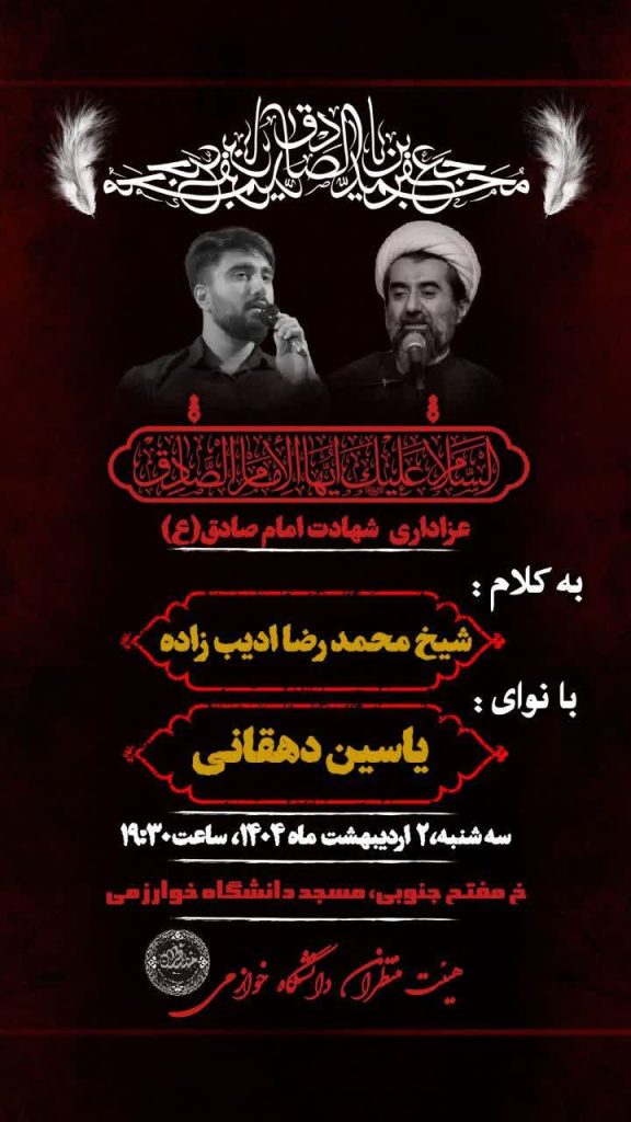 مراسم عزاداری هیئت منتظران به مناسبت شهادت امام صادق(ع)access_time 31 فروردین 1404comment بدون دیدگاه